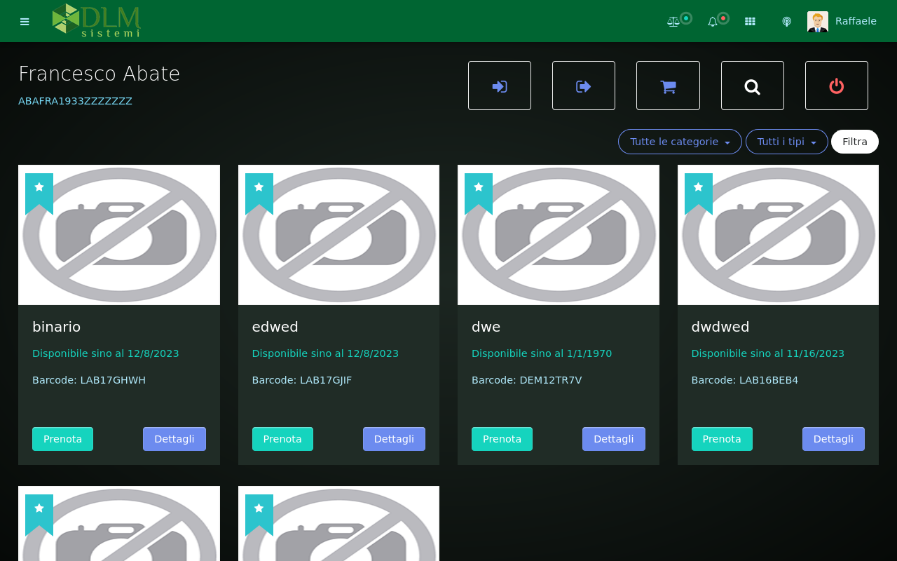 Cliccare su prenota per selezionare il bene ed inserirlo nel carrello o dettagli per visualizzare i dettagli del bene.
