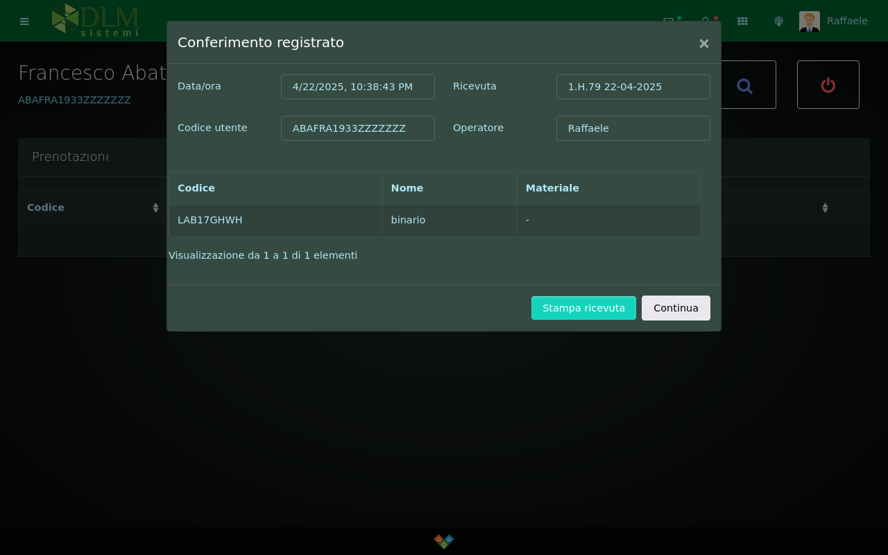 Dopo aver prenotato uno o più beni, si può chiudure l'operazione di ritiro.