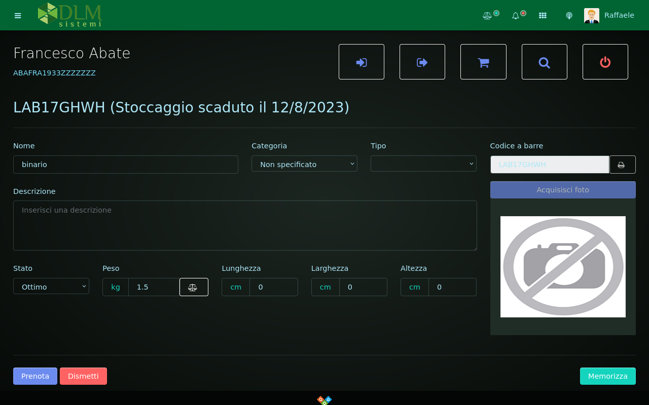 La pagina mostra anche la permanenza massima del bene nel centro prima di essere dismesso.