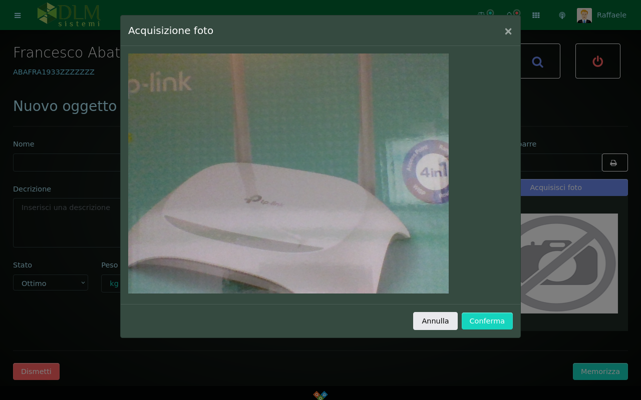 Per acquisire la foto cliccare sull'apposito pulsante e confermare lo scatto.