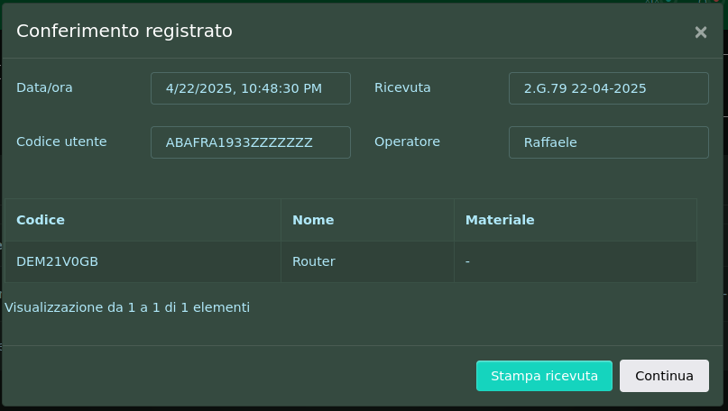 Viene generata la ricevuta di consegna, si può stampare cliccando sul tasto
