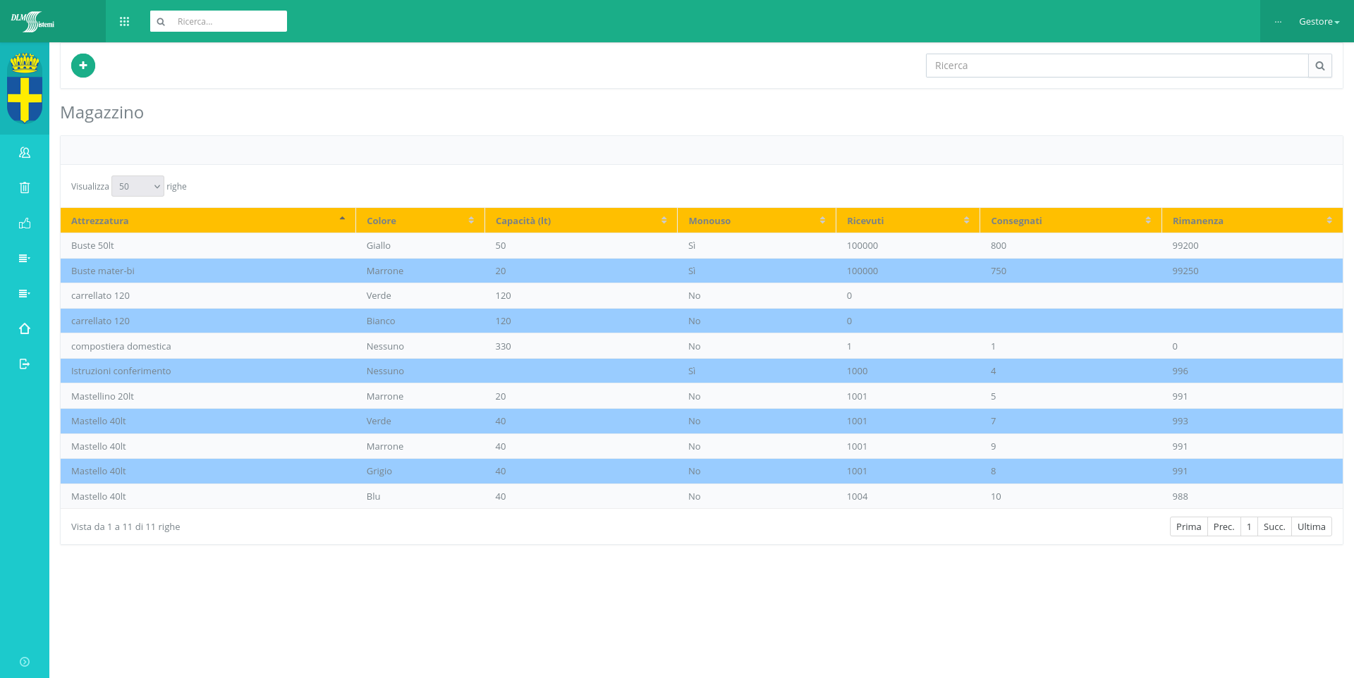 La tabella mostrerà le attrezzature ed i quantitivi gestiti