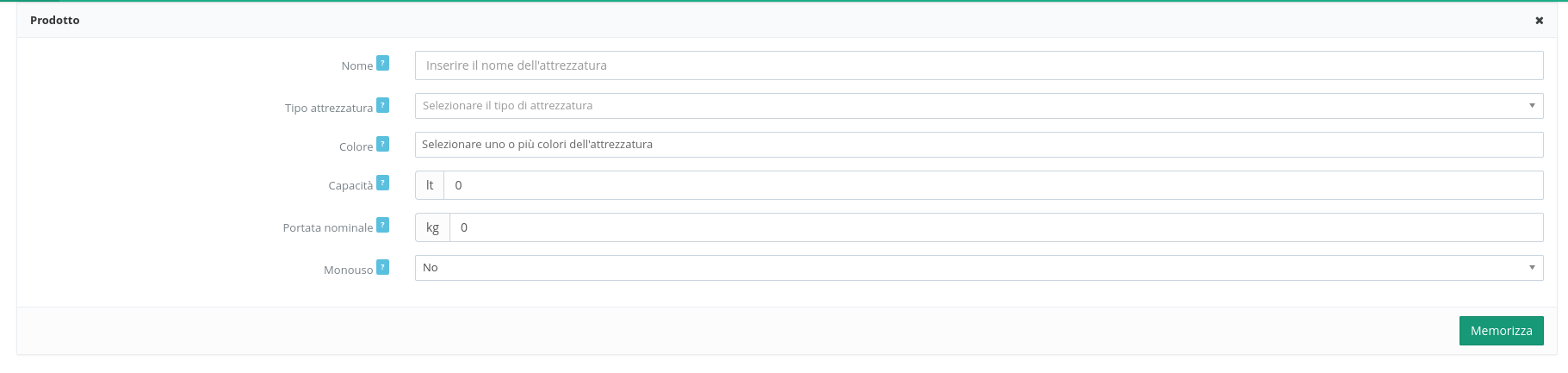 Per aggiungere una nuova attrezzatura cliccare sul +